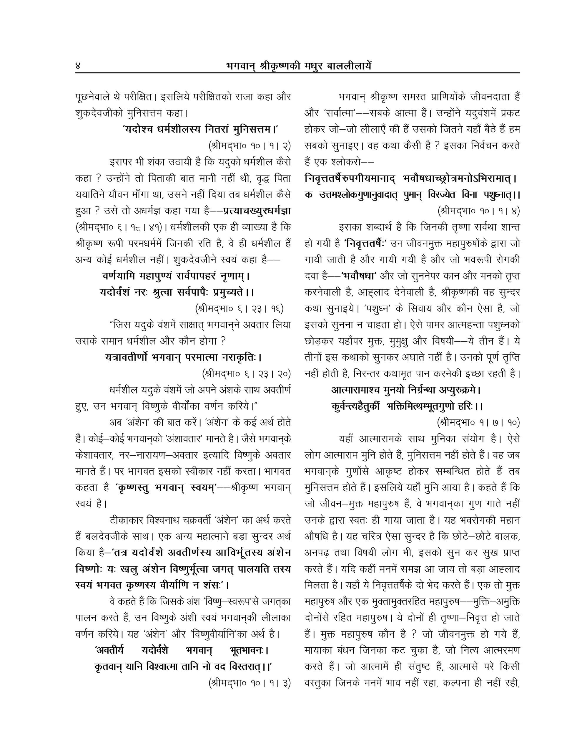 There is a beautiful, simple and heart-touching description of Lord Krishna’s childhood pastimes described in the tenth canto of Shrimad Bhagwat. It appears that the eyes have seen the details. A word-picture like Leela’s has been presented in it, it is rare. This is the grace-prasad of a great sage who is the seer of Bhagavat-Leelas. A readable, collectible and giftable illustrated, bound 500-page book “The sweet childhood pastimes of Lord Krishna” is a beautiful book.”